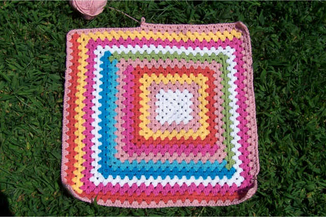 I do like this – and you are very sensible to avoid crocheting together lots of little squares. https://iamsimplyhooked.wordpress.com