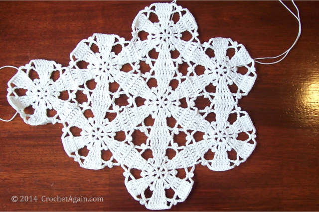 The original didn’t have any edging added to it. I don’t know if it wasn’t finished, or if it just wasn’t meant to have one. I was thinking that, (if you planned ahead) that it might be nice to add a picot to the center of the petals on the edge that would be the outer ones. That might give it a bit more finished look and go with the picots already there.