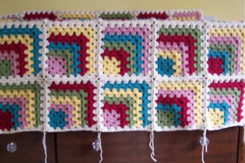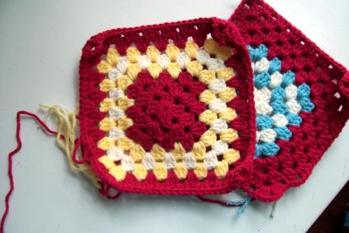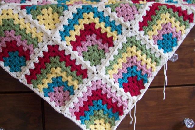 And my other big project, a mitered crochet blanket. I have quite a way still to go on this, but I really like how it is coming out. A bit blurry photo, but it gives you a straight on view. I plan on writing the pattern for this granny square in the not too distant future.