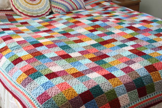 But I didn’t. This stunning granny square blanket was made by Sandra’s Cherry Heart. 672 small grannies. Oh, how I want one! I so love the colors! I am overwhelmed at just the thought of all those squares, the sheer number of them! And yet the itch to make is strong, they are such little squares, little squares go fast….